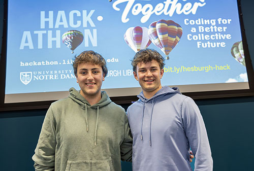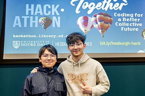 Welcome to the University of Notre Dame Hesburgh Libraries Hackathon, where teams of developers, graphic designers, subject specialists, and strategists come together to reimagine solutions to everyday problems related to this year’s theme: We Rise Together: Coding for a Better Collective Future.